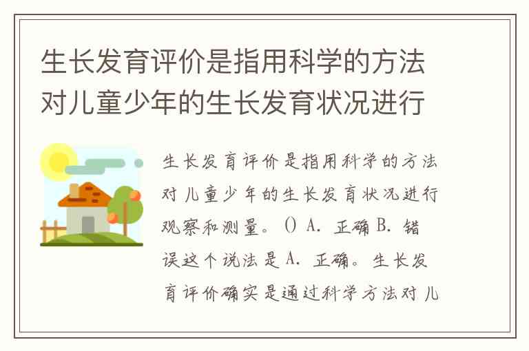 生长发育评价是指用科学的方法对儿童少年的生长发育状况进行观察和测量。() A. 正确 B. 错误