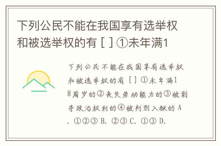 下列公民不能在我国享有选举权和被选举权的有 [ ] ①未年满18周岁的②丧失劳动能力的③被剥夺政治权利的④被判刑入狱的 A. ①②③ B. ②③ C. ①③ D. ①②③④