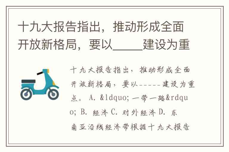 十九大报告指出,推动形成全面开放新格局,要以_____建设为重点。 A. “一带一路” B. 经济 C. 对外经济 D. 东南亚沿线经济带