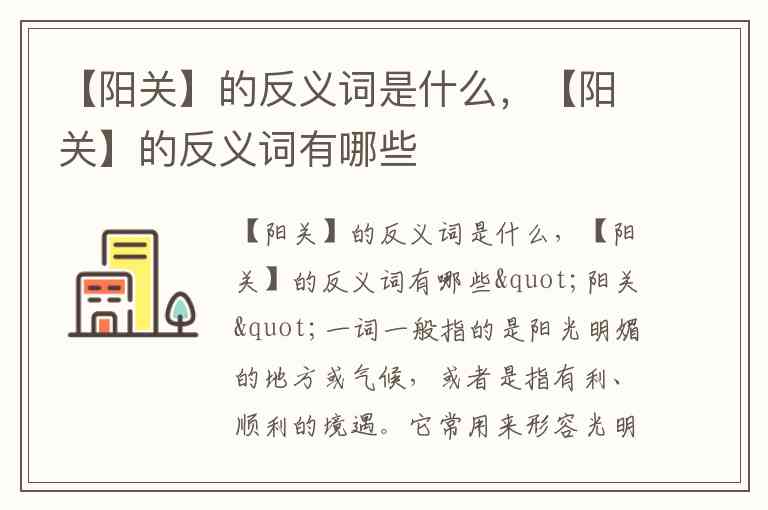 【阳关】的反义词是什么,【阳关】的反义词有哪些
