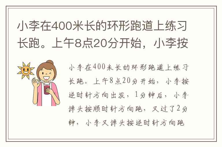 题目描述了小李在400米长的环形跑道上跑步,并且按一定规律掉头。我们需要计算出小李停止练习时的时间。