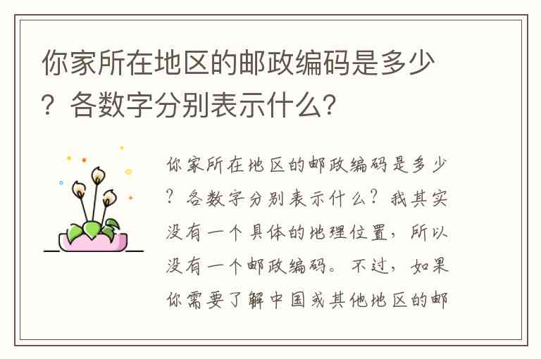 你家所在地区的邮政编码是多少?各数字分别表示什么?