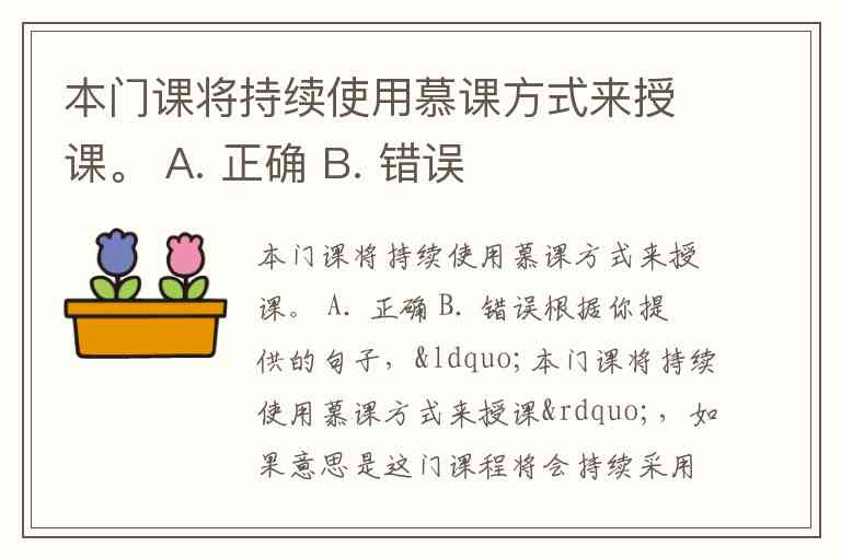 本门课将持续使用慕课方式来授课。 A. 正确 B. 错误