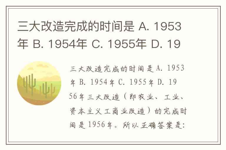 三大改造完成的时间是 A. 1953年 B. 1954年 C. 1955年 D. 1956年