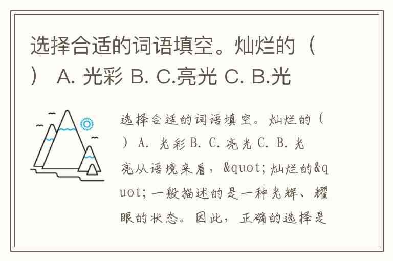 选择合适的词语填空。灿烂的() A. 光彩 B. C.亮光 C. B.光亮