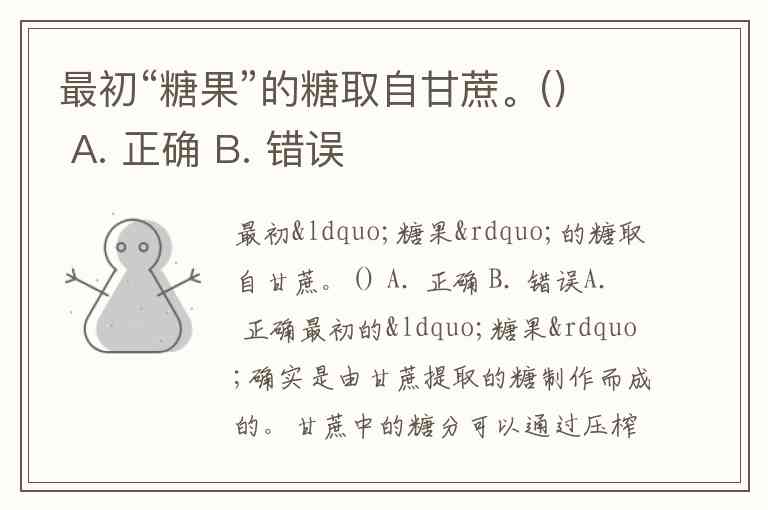 最初“糖果”的糖取自甘蔗。() A. 正确 B. 错误
