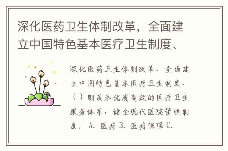 深化医药卫生体制改革,全面建立中国特色基本医疗卫生制度、()制度和优质高效的医疗卫生服务体系,健全现代医院管理制度。 A. 医疗 B. 医疗保障 C. 社会保障 D. 劳动保障