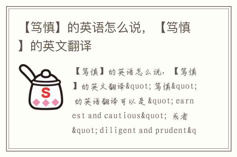 "笃慎" 的英语翻译可以是 "earnest and cautious" 或者 "diligent and prudent"。这个词通常用来形容一个人既认真又小心谨慎,特别是在做事情时表现得十分严谨和谨慎。