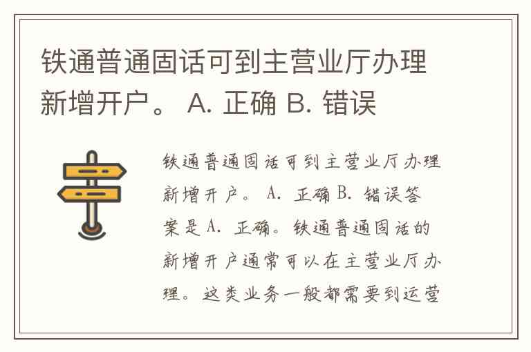 铁通普通固话可到主营业厅办理新增开户。 A. 正确 B. 错误