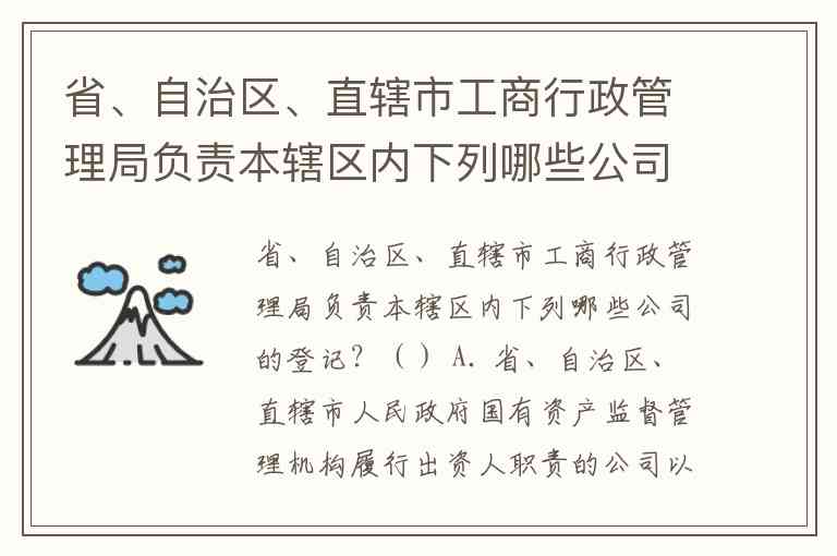 省、自治区、直辖市工商行政管理局负责本辖区内下列哪些公司的登记?() A. 省、自治区、直辖市人民政府国有资产监督管理机构履行出资人职责的公司以及该公司投资设立并持有50%以上股份的公司 B. 国务院国有资产监督管理机构履行出资人职责的公司以及该公司投、资设立并持有50%以上股份的公司 C. 国务院批准设立的或者行业归口管理部门审查同意由国务院各部门以及科技性社会团体设立的全国性公司和大型企业 D. 国务院授权部门审查同意由国务院各部门设立的经营进出口业务、劳务输出或者对外承包工程的公司