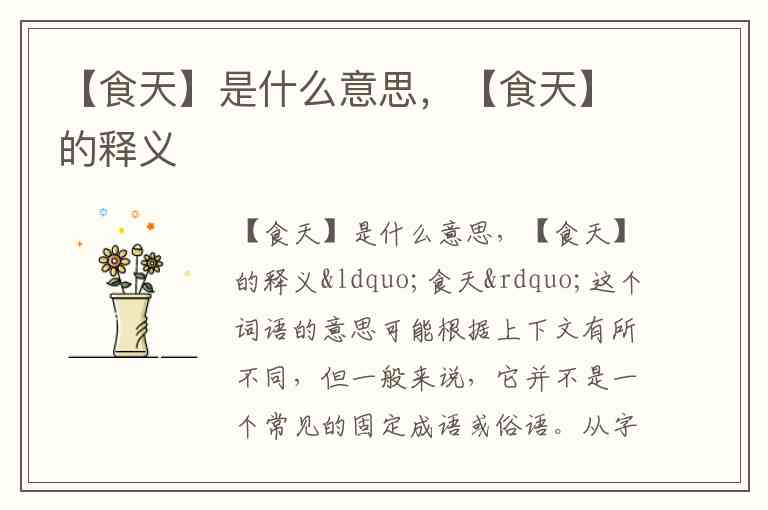 “食天”这个词语的意思可能根据上下文有所不同,但一般来说,它并不是一个常见的固定成语或俗语。