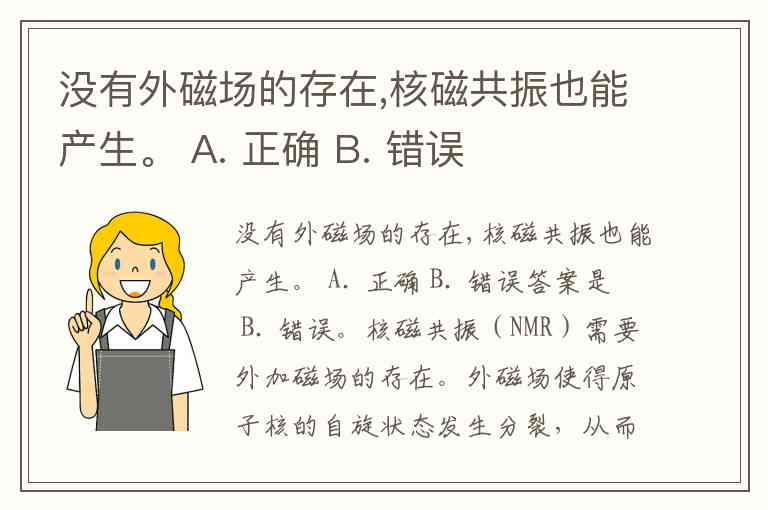没有外磁场的存在,核磁共振也能产生。 A. 正确 B. 错误