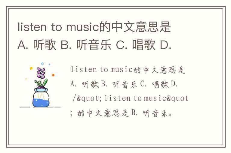 listen to music的中文意思是 A. 听歌 B. 听音乐 C. 唱歌 D. /