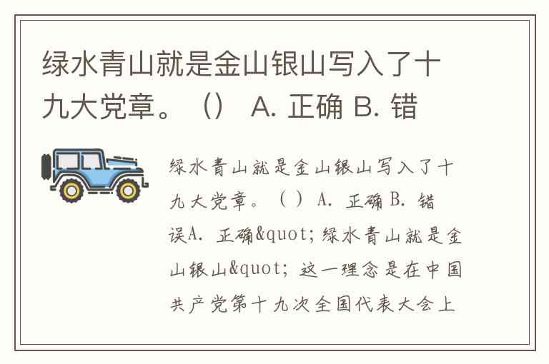绿水青山就是金山银山写入了十九大党章。() A. 正确 B. 错误