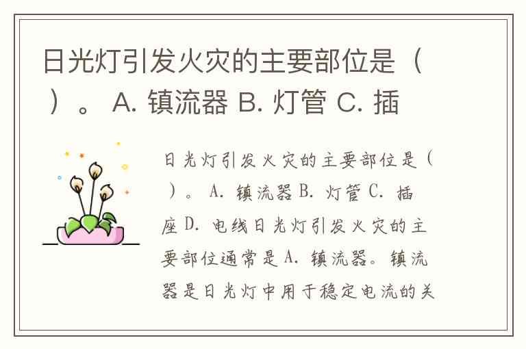日光灯引发火灾的主要部位是( )。 A. 镇流器 B. 灯管 C. 插座 D. 电线