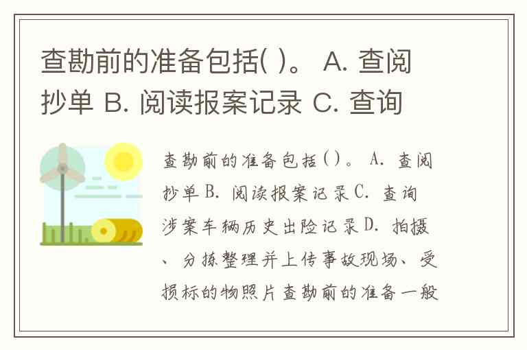 所以,正确答案应该是 A、B、C、D 都是查勘前的准备工作。这些步骤能够帮助查勘员更全面地了解案件情况,从而做出准确的判断和处理。