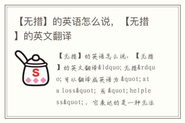 “无措”可以翻译成英语为 "at a loss" 或 "helpless"。它表达的是一种无法应对、迷茫或者不知所措的状态。