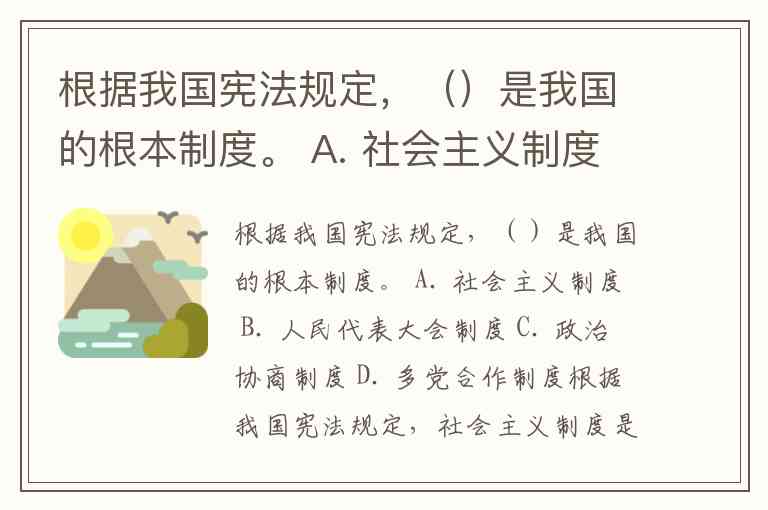根据我国宪法规定,()是我国的根本制度。 A. 社会主义制度 B. 人民代表大会制度 C. 政治协商制度 D. 多党合作制度