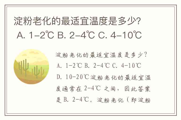 淀粉老化的最适宜温度是多少? A. 1-2℃ B. 2-4℃ C. 4-10℃ D. 10-20℃
