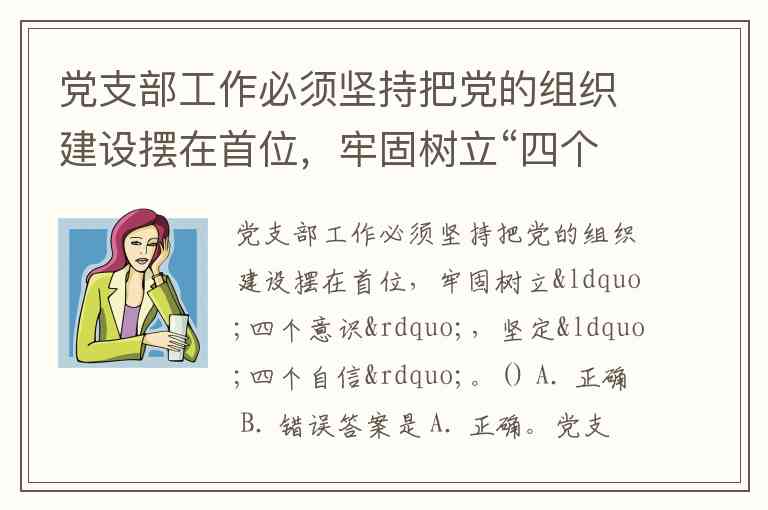 党支部工作必须坚持把党的组织建设摆在首位,牢固树立“四个意识”,坚定“四个自信”。() A. 正确 B. 错误