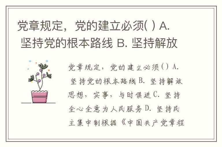 党章规定,党的建立必须( ) A. 坚持党的根本路线 B. 坚持解放思想,实事,与时俱进 C. 坚持全心全意为人民服务 D. 坚持民主集中制