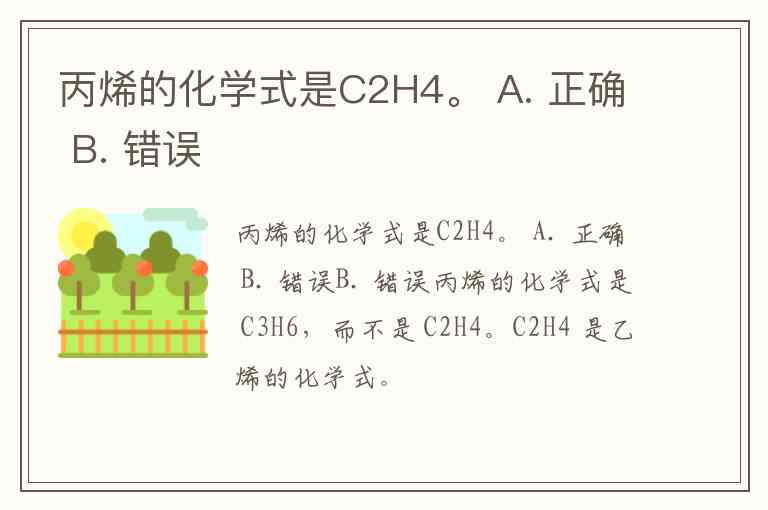 丙烯的化学式是C2H4。 A. 正确 B. 错误