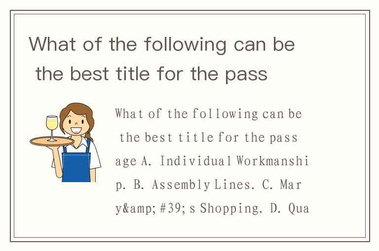 What of the following can be the best title for the passage A. Individual Workmanship. B. Assembly Lines. C. Mary's Shopping. D. Quality of Goods.