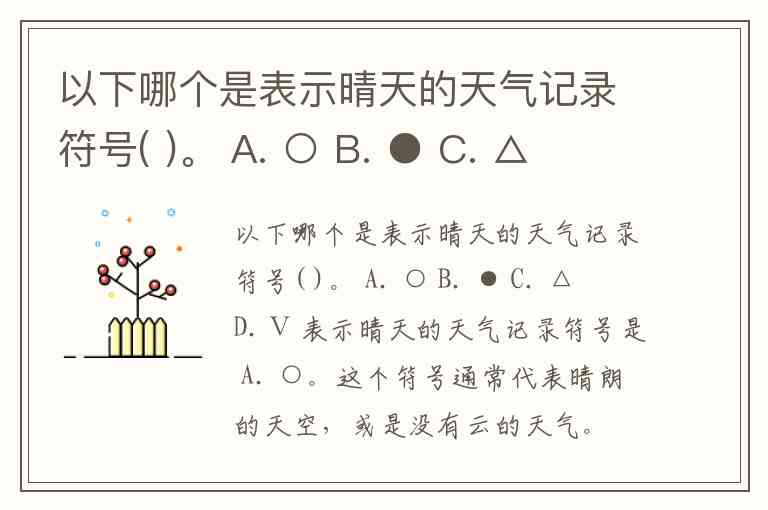 以下哪个是表示晴天的天气记录符号( )。 A. ○ B. ● C. △ D. Ⅲ