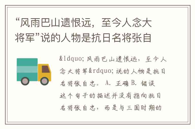 “风雨巴山遗恨远,至今人念大将军”说的人物是抗日名将张自忠。 A. 正确 B. 错误