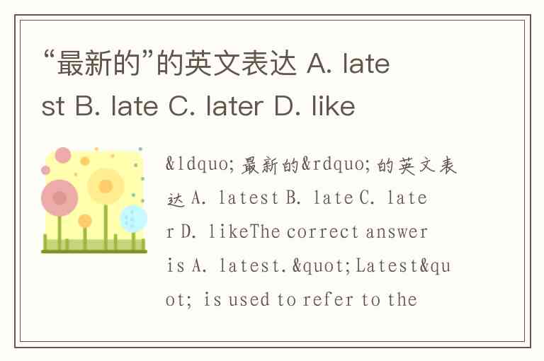 “最新的”的英文表达 A. latest B. late C. later D. like