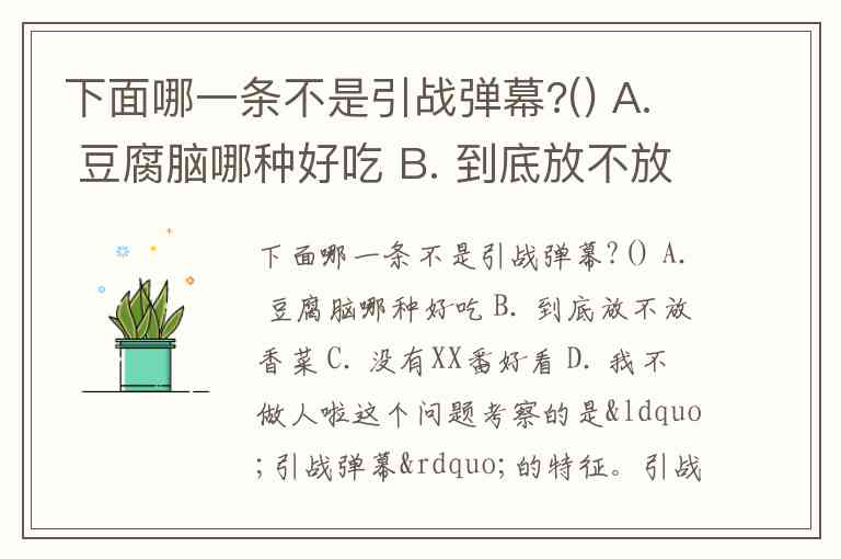 下面哪一条不是引战弹幕?() A. 豆腐脑哪种好吃 B. 到底放不放香菜 C. 没有XX番好看 D. 我不做人啦