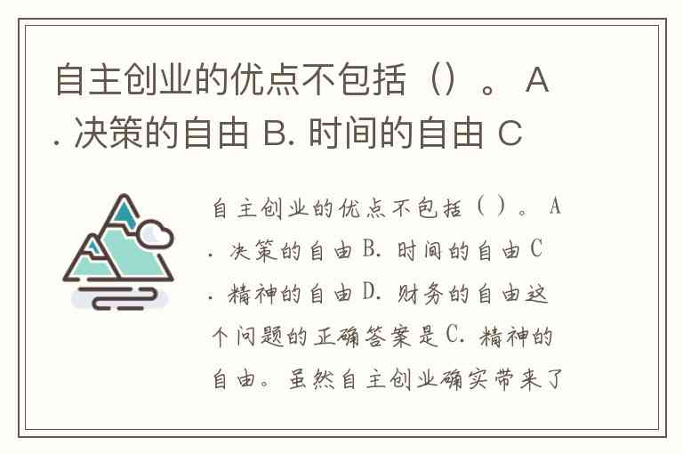 自主创业的优点不包括()。 A. 决策的自由 B. 时间的自由 C. 精神的自由 D. 财务的自由