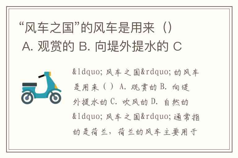 “风车之国”的风车是用来() A. 观赏的 B. 向堤外提水的 C. 吹风的 D. 自然的