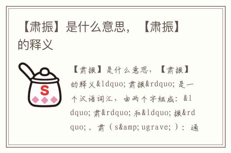 综合起来,“肃振”可以解释为一种“严肃的激励”或“庄重的振奋”。在不同的语境下,它可能表示通过严肃、庄重的方式去激励、鼓舞、振兴某事物,或者是“肃清”某些不正之风后进行振作、恢复的意思。