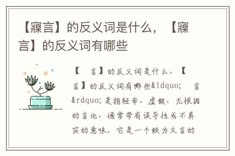 反义词通常是与“寱言”相对的含义,指的是真实、可信、严谨、严肃的言辞。具体来说,以下是一些反义词:
