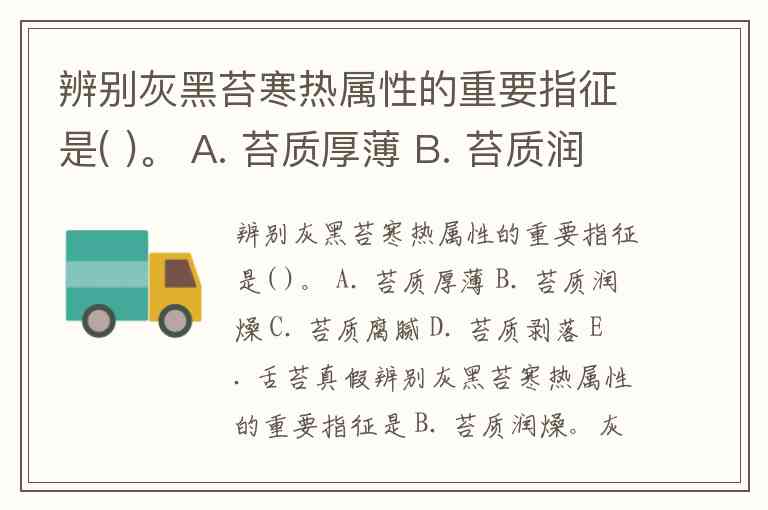 辨别灰黑苔寒热属性的重要指征是 B. 苔质润燥。