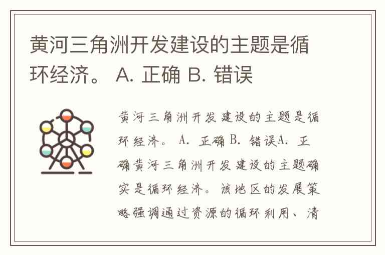 黄河三角洲开发建设的主题是循环经济。 A. 正确 B. 错误