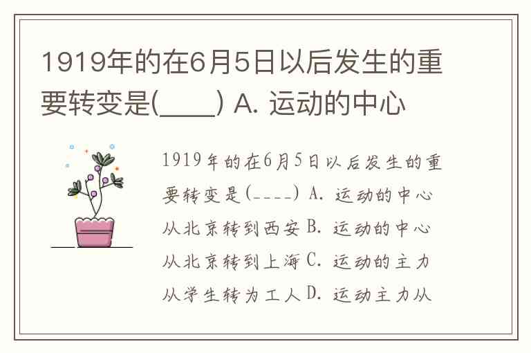1919年6月5日以后,最重要的转变是 C. 运动的主力从学生转为工人。