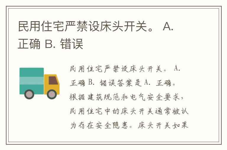 民用住宅严禁设床头开关。 A. 正确 B. 错误