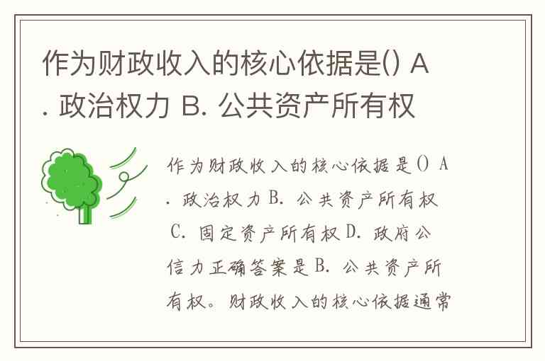 作为财政收入的核心依据是() A. 政治权力 B. 公共资产所有权 C. 固定资产所有权 D. 政府公信力