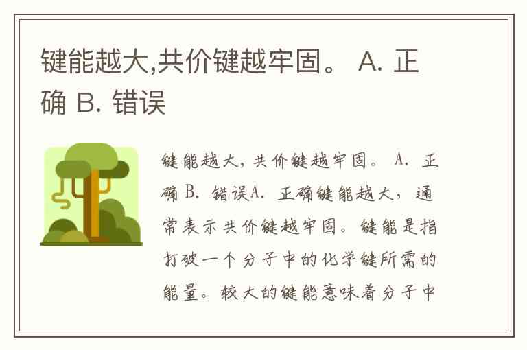 键能越大,共价键越牢固。 A. 正确 B. 错误