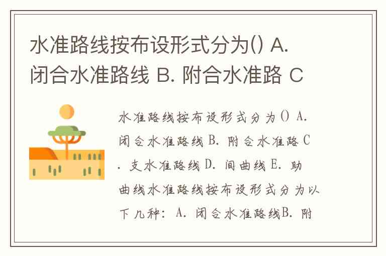水准路线按布设形式分为() A. 闭合水准路线 B. 附合水准路 C. 支水准路线 D. 间曲线 E. 助曲线
