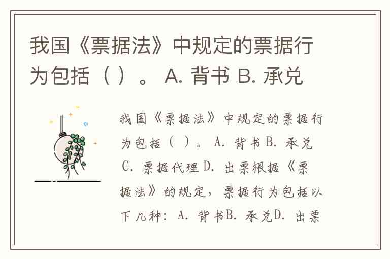 我国《票据法》中规定的票据行为包括( )。 A. 背书 B. 承兑 C. 票据代理 D. 出票
