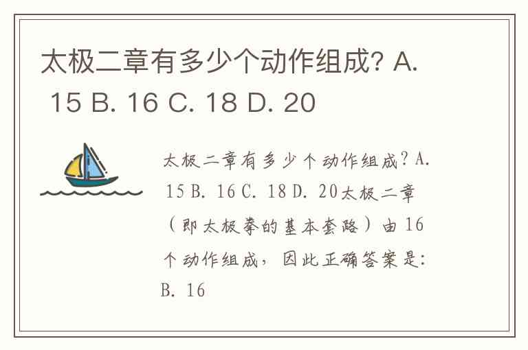 太极二章有多少个动作组成? A. 15 B. 16 C. 18 D. 20