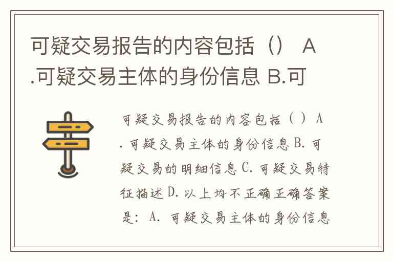 正确答案是:A. 可疑交易主体的身份信息、B. 可疑交易的明细信息 和 C. 可疑交易特征描述。