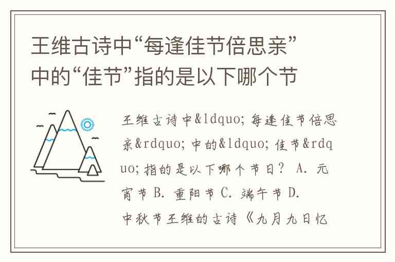 王维古诗中“每逢佳节倍思亲”中的“佳节”指的是以下哪个节日? A. 元宵节 B. 重阳节 C. 端午节 D. 中秋节