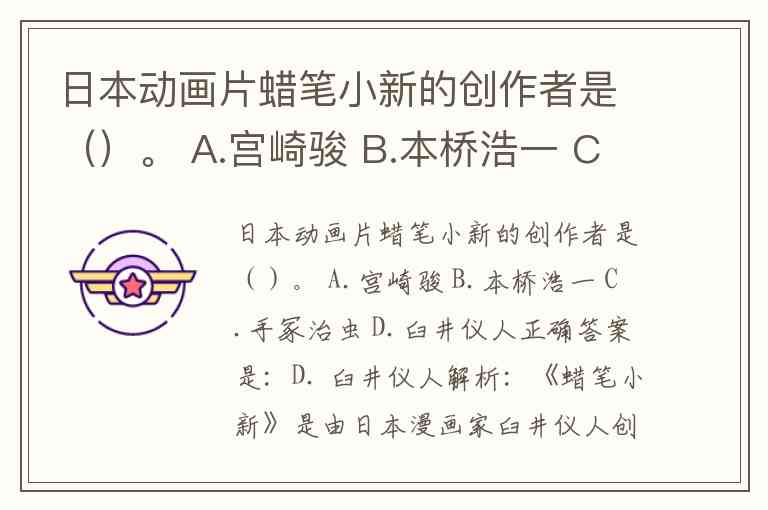 A. 宫崎骏:日本动画大师,吉卜力工作室的联合创始人,代表作品有《千与千寻》、《龙猫》、《幽灵公主》等,其风格与《蜡笔小新》完全不同。