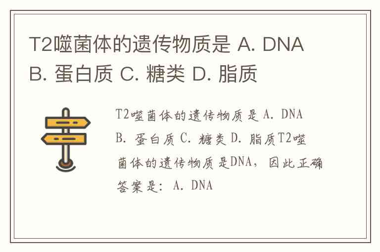 T2噬菌体的遗传物质是 A. DNA B. 蛋白质 C. 糖类 D. 脂质