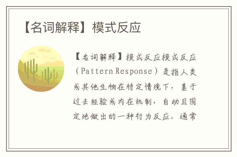 总结来说,模式反应强调的是对反复刺激的“固定”反应,而这种反应往往不依赖于复杂的思维过程。