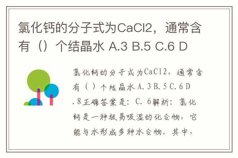 题目中问的是“通常含有()个结晶水”,指的是最常见、最普遍的稳定结晶形态,因此答案是 6个。
